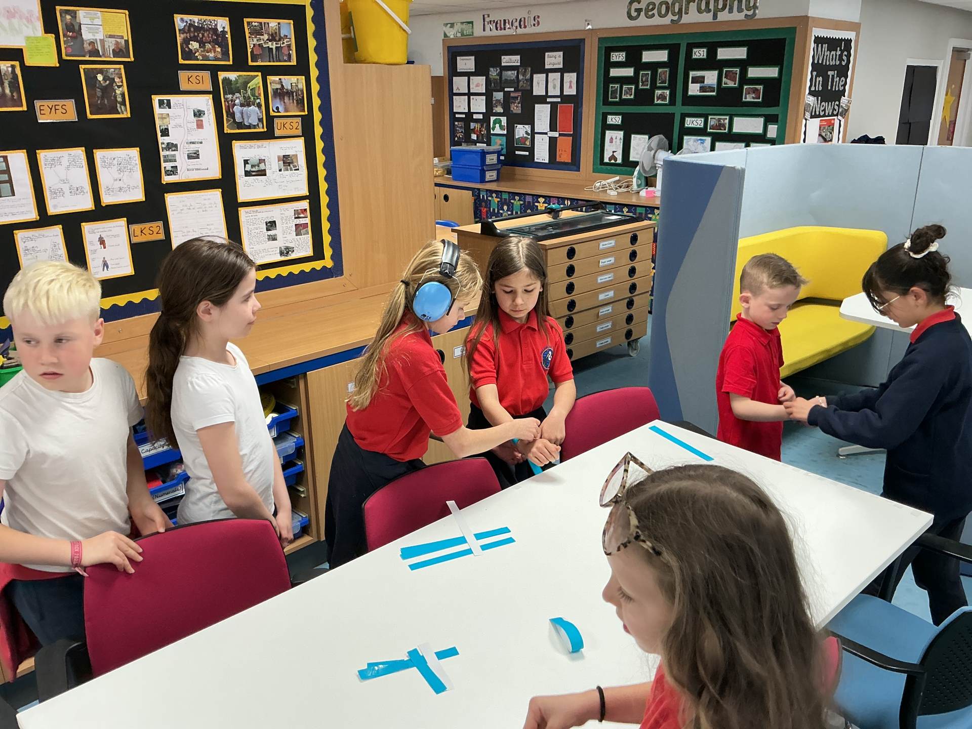 Upper Key Stage 2 were introduced to Graphic Notation, which is representing music in a non-traditional way e.g. using lines, shapes and squiggles instead of standard notation (crotchets, quavers etc.) After evaluating the likes of John Cage’s ‘Water Walk’ they were given the challenge of writing a piece of music inspired by the painting ‘Dead Sea’ by Paul Nash, which was linked to their topic. They worked in groups and had some fantastic original ideas, including ‘swooshing’ a bean bag! Great work by all!