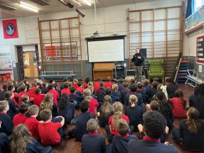 He did some bucket drumming workshops which had such a feel-good factor! We are very lucky to have such great live performances in school.